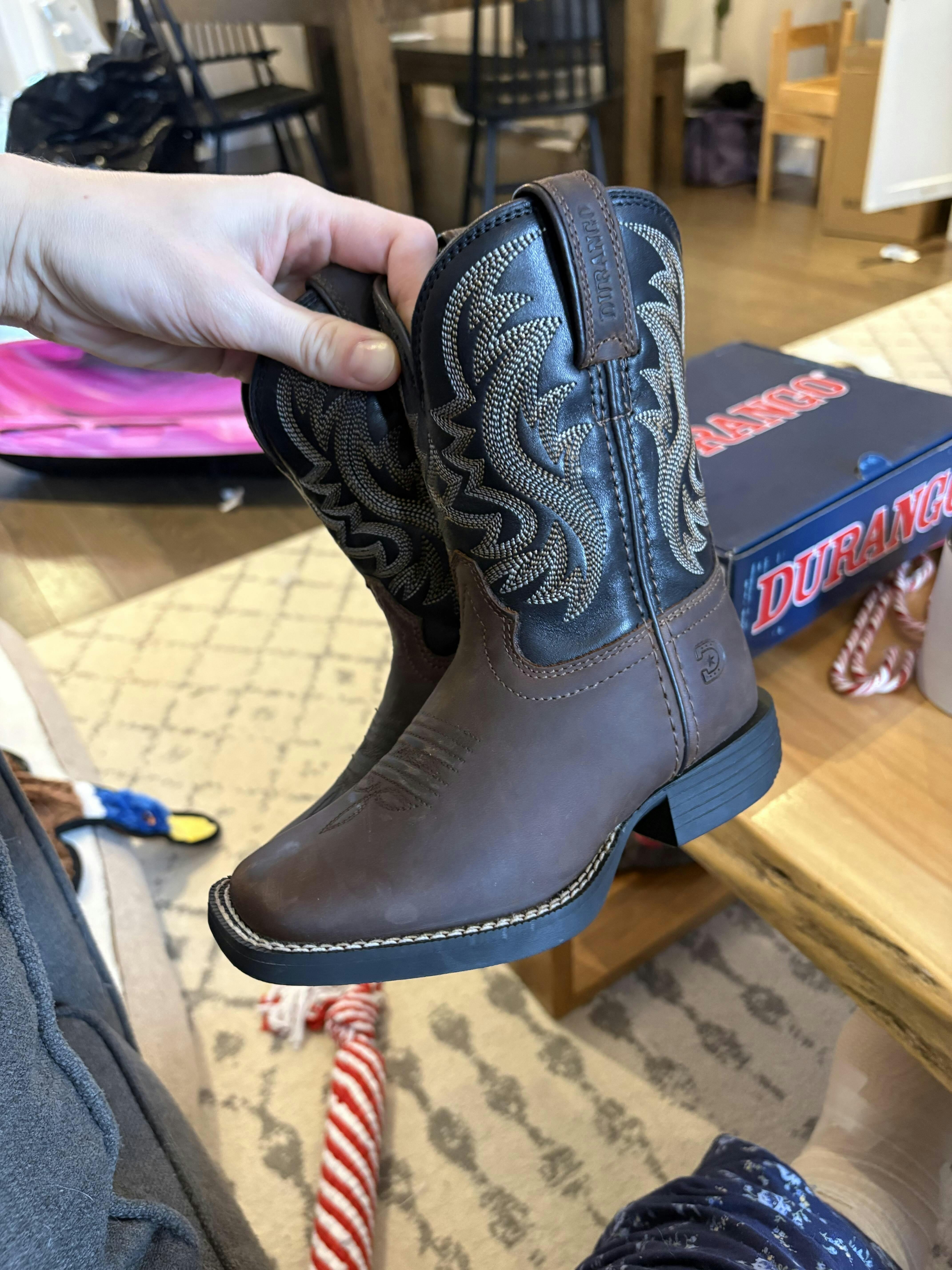 Adoptez un style éprouvé au quotidien avec la collection enfant Durango Shyloh Marron Vif/Noir Onyx. Ce modèle est doté de cuir pleine fleur, d'une doublure en mesh souple, du système Durango X-Pand pour un chaussage et un retrait faciles, d'une semelle intérieure coussinée et flexible et d'un cambrion en fibre de verre. Il est complété par une semelle extérieure en caoutchouc antidérapante, une double couture, un talon et un bout carré. Offrez-vous une paire dès aujourd'hui.